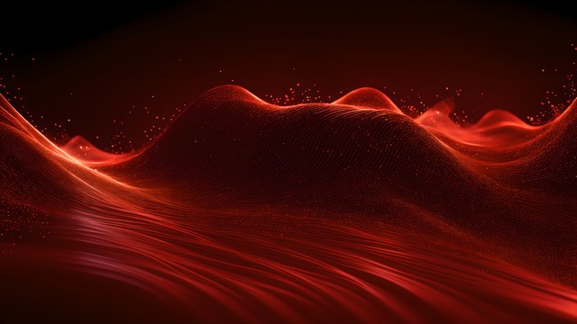数字技术背景。发光点的动态波。彩色音乐波。演示设计的未来背景