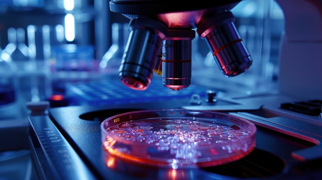 先进显微镜检查培养皿样品的未来实验室特写中的尖端显微分析