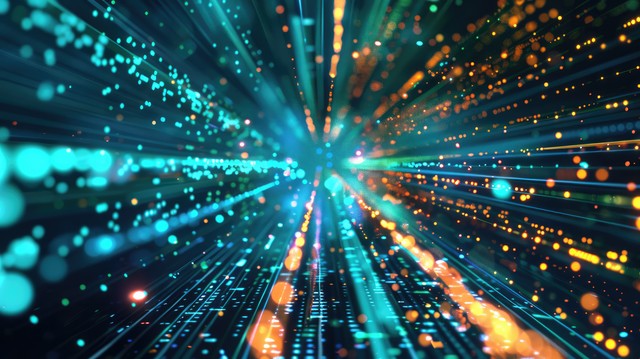 数字技术速度连接蓝绿色背景网络纳米信息抽象通信创新未来科技数据互联网网络连接Ai大数据线点图3d