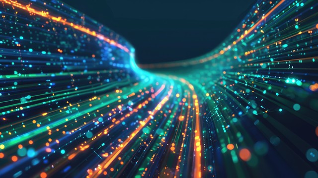 数字技术速度连接蓝绿色背景网络纳米信息抽象通信创新未来科技数据互联网网络连接Ai大数据线点图3d