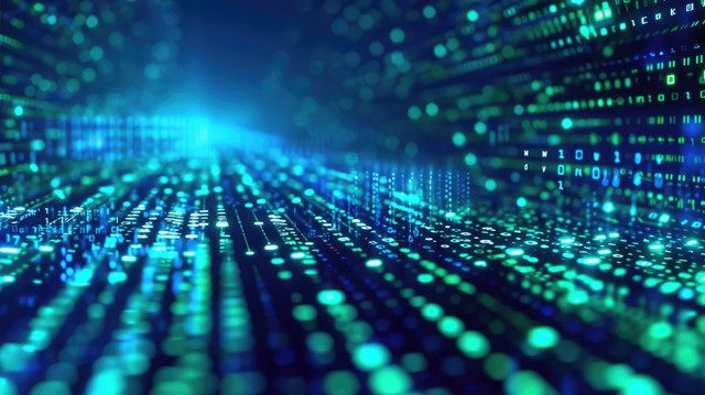 数字技术速度连接蓝绿色背景网络纳米信息抽象通信创新未来科技数据互联网网络连接Ai大数据线点图3d