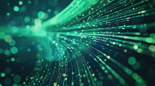 数字技术速度连接蓝绿色背景网络纳米信息抽象通信创新未来科技数据互联网网络连接Ai大数据线点图3d