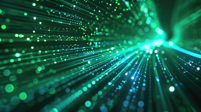 数字技术速度连接蓝绿色背景网络纳米信息抽象通信创新未来科技数据互联网网络连接Ai大数据线点图3d
