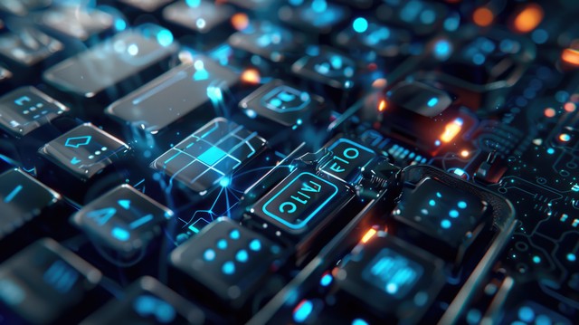 按计算机上的 Enter 按钮。钥匙锁安全系统抽象技术世界数字链接高科技深蓝色背景输入密码登录。锁定