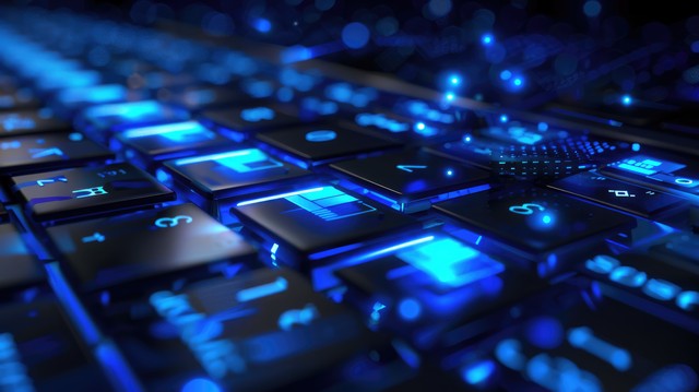 按计算机上的 Enter 按钮。钥匙锁安全系统抽象技术世界数字链接高科技深蓝色背景输入密码登录。锁定