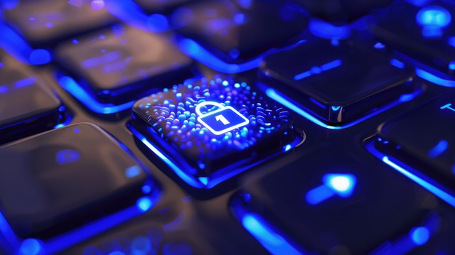 按计算机上的 Enter 按钮。钥匙锁安全系统抽象技术世界数字链接高科技深蓝色背景输入密码登录。锁定