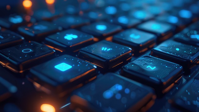按计算机上的 Enter 按钮。钥匙锁安全系统抽象技术世界数字链接高科技深蓝色背景输入密码登录。锁定
