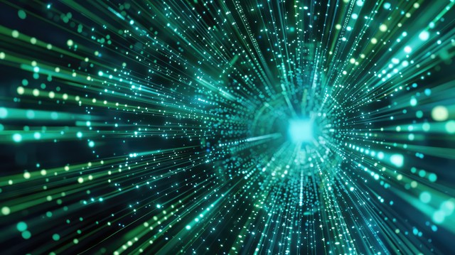 数字技术速度连接蓝绿色背景网络纳米信息抽象通信创新未来科技数据互联网网络连接Ai大数据线点图3d