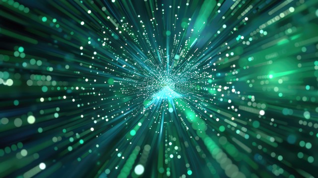 数字技术速度连接蓝绿色背景网络纳米信息抽象通信创新未来科技数据互联网网络连接Ai大数据线点图3d
