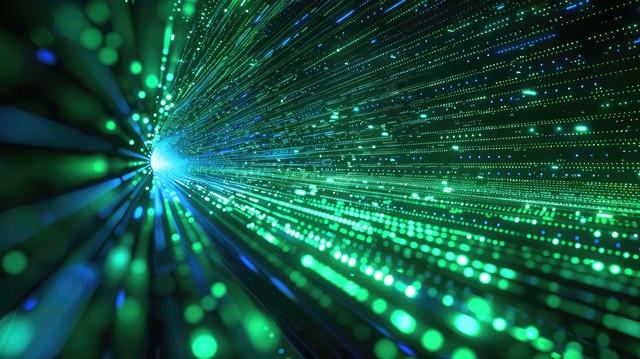 数字技术速度连接蓝绿色背景网络纳米信息抽象通信创新未来科技数据互联网网络连接Ai大数据线点图3d