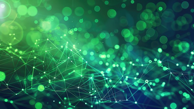 数字技术横幅绿色蓝色背景概念与技术光效抽象技术创新未来数据互联网网络Ai大数据线点连接插图矢量