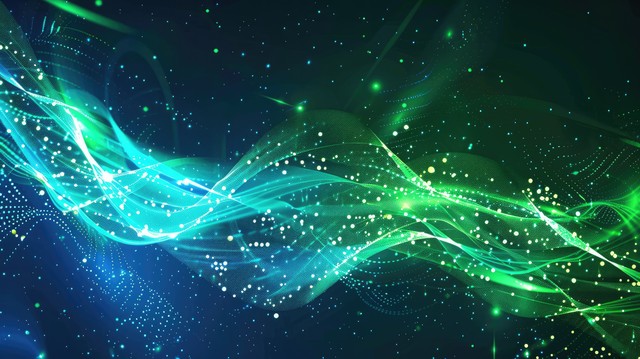 数字技术横幅绿色蓝色背景概念与技术光效抽象技术创新未来数据互联网网络Ai大数据线点连接插图矢量