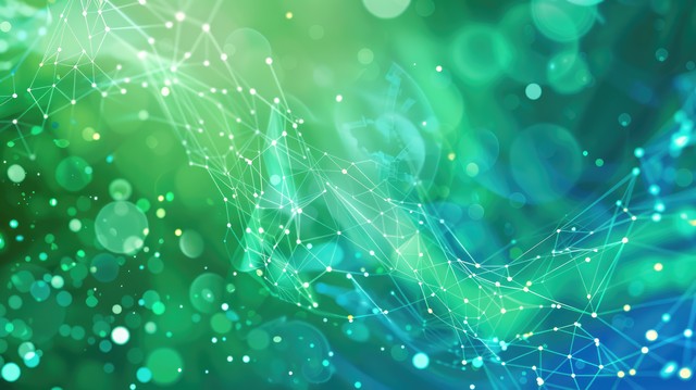 数字技术横幅绿色蓝色背景概念与技术光效抽象技术创新未来数据互联网网络Ai大数据线点连接插图矢量
