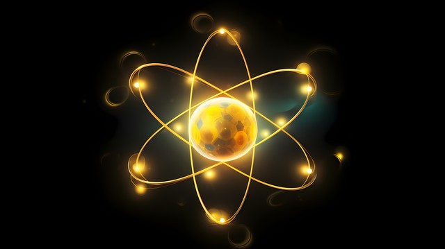 充满活力的金色发光原子