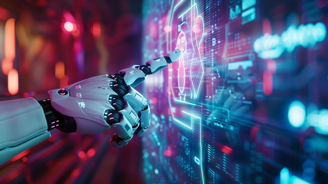 机器人和半机械人发展的3D渲染人工智能研究。计算机大脑的数字数据分析和技术研究背景图