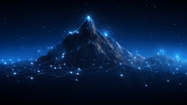 由发光线和点组成的数字山脉