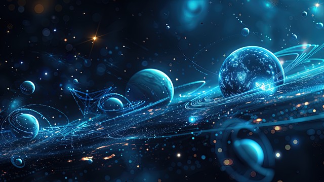 科技蓝插图壁纸海报素材,科技公司风格,抽象的线条和形状,宇宙星空艺术创意图片