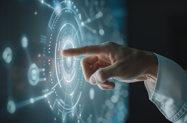 手指操作未来科技GUI图形图像界面,与人工智能界面互动