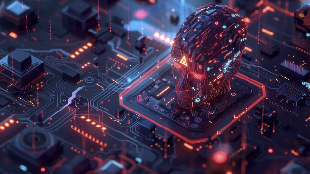 人工智能插图。 抽象的未来派电路板背景。 数字技术的高科技插图。
