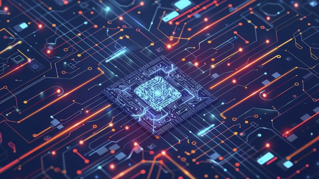 人工智能插图。 抽象的未来派电路板背景。 数字技术的高科技插图。
