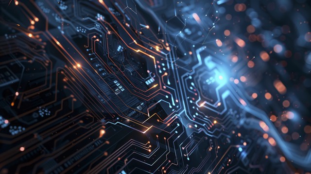 人工智能插图。 抽象的未来派电路板背景。 数字技术的高科技插图。