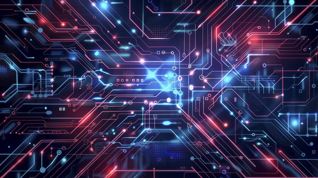 人工智能插图。 抽象的未来派电路板背景。 数字技术的高科技插图。