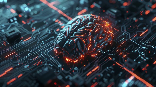 人工智能插图。 抽象的未来派电路板背景。 数字技术的高科技插图。