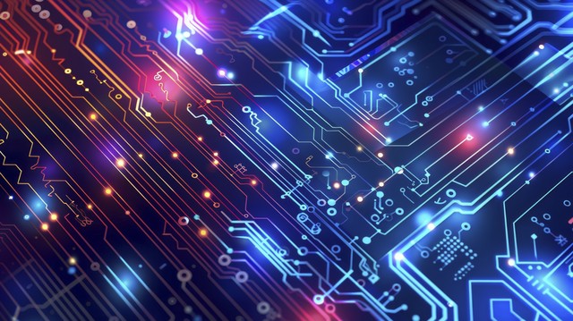 人工智能插图。 抽象的未来派电路板背景。 数字技术的高科技插图。