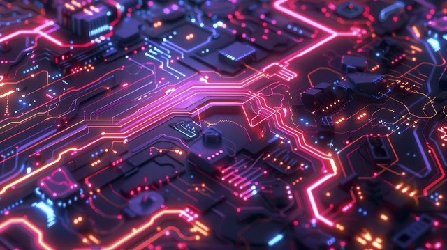 人工智能插图。 抽象的未来派电路板背景。 数字技术的高科技插图。