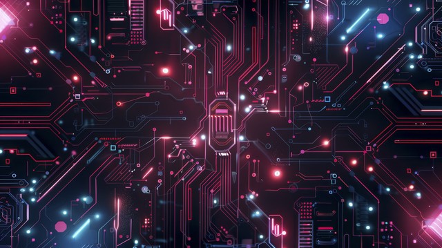 人工智能插图。 抽象的未来派电路板背景。 数字技术的高科技插图。
