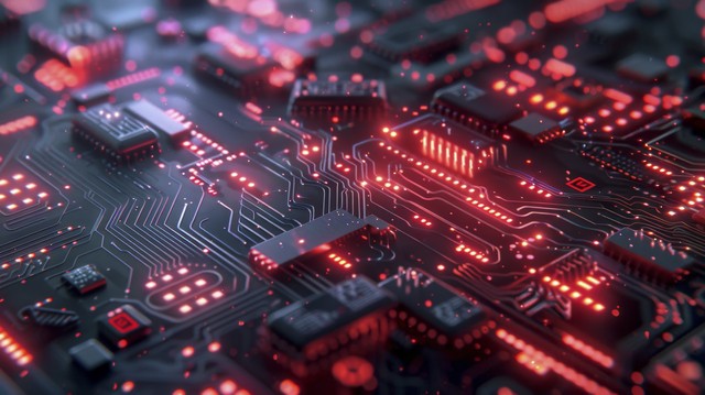 人工智能插图。 抽象的未来派电路板背景。 数字技术的高科技插图。