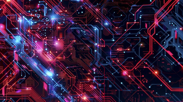 人工智能插图。 抽象的未来派电路板背景。 数字技术的高科技插图。