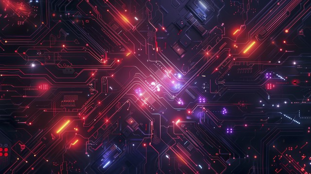 人工智能插图。 抽象的未来派电路板背景。 数字技术的高科技插图。