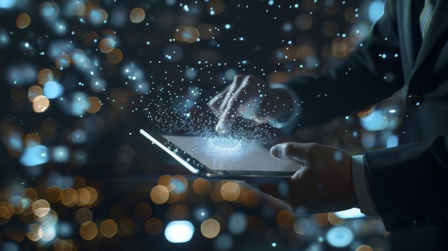 使用现代平板电脑的商人。 网络安全概念。 商业技术和互联网概念。