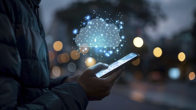 商人触摸指向技术背景上的封闭挂锁现代安全数字背景。 锁定保护系统网络安全和信息或网络保护