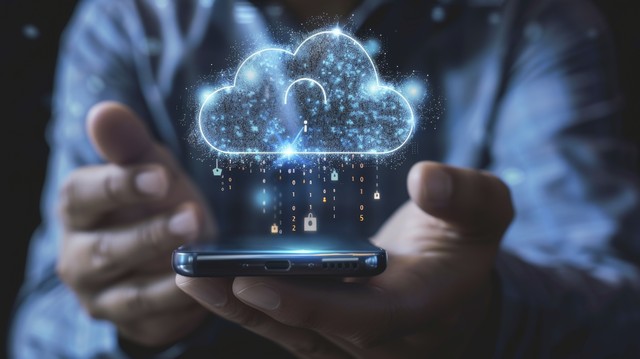 商人触摸指向技术背景上的封闭挂锁现代安全数字背景。 锁定保护系统网络安全和信息或网络保护