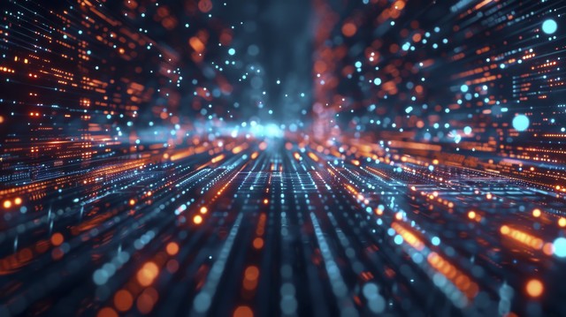 数字技术。 高速数据传输。 3D 插图中的信息流。 未来霓虹灯网络空间中的运动