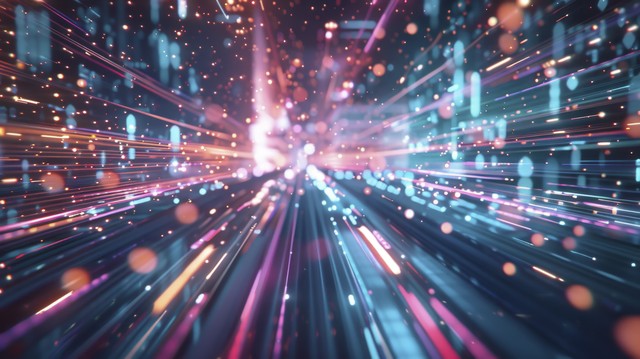 数字技术。 高速数据传输。 3D 插图中的信息流。 未来霓虹灯网络空间中的运动