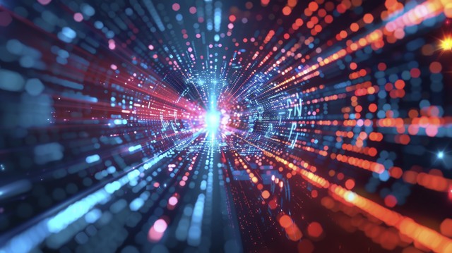 数字技术。 高速数据传输。 3D 插图中的信息流。 未来霓虹灯网络空间中的运动
