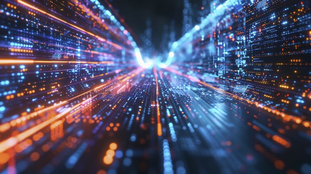 数字技术。 高速数据传输。 3D 插图中的信息流。 未来霓虹灯网络空间中的运动