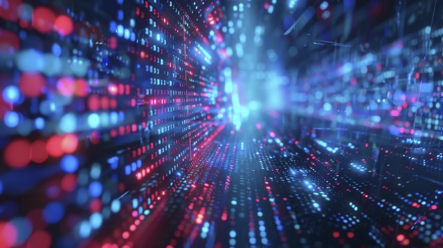 数字技术。 高速数据传输。 3D 插图中的信息流。 未来霓虹灯网络空间中的运动