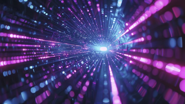 数字技术。 高速数据传输。 3D 插图中的信息流。 未来霓虹灯网络空间中的运动