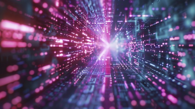 数字技术。 高速数据传输。 3D 插图中的信息流。 未来霓虹灯网络空间中的运动