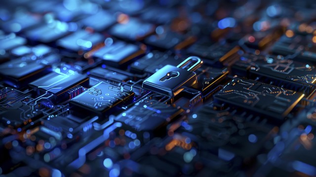 按计算机上的 Enter 按钮。 钥匙锁安全系统抽象技术世界数字链接高科技深蓝色背景输入密码登录。锁