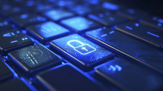 按计算机上的 Enter 按钮。 钥匙锁安全系统抽象技术世界数字链接高科技深蓝色背景输入密码登录。锁