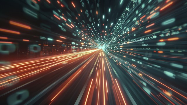 在运动模糊路径或轨道速度上具有二进制代码的高速和更快的数字矩阵技术信息概念。