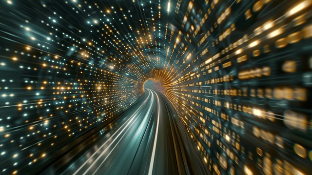 在运动模糊路径或轨道速度上具有二进制代码的高速和更快的数字矩阵技术信息概念。