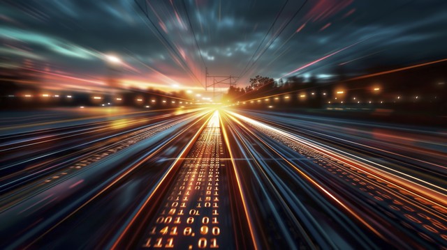 在运动模糊路径或轨道速度上具有二进制代码的高速和更快的数字矩阵技术信息概念。