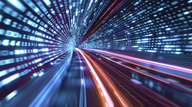 在运动模糊路径或轨道速度上具有二进制代码的高速和更快的数字矩阵技术信息概念。