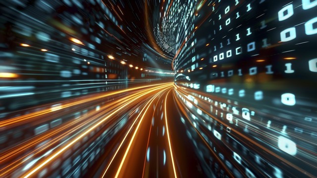 在运动模糊路径或轨道速度上具有二进制代码的高速和更快的数字矩阵技术信息概念。